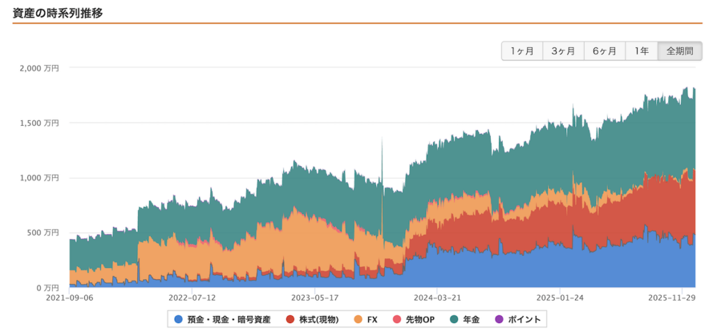 最近はFX(オレンジ)から株式(赤)への資産の割り振り変化が顕著ですが、2026年はもうもう少し時間を取ってFXの割合を増やしていきたいなぁと思う今日この頃。
